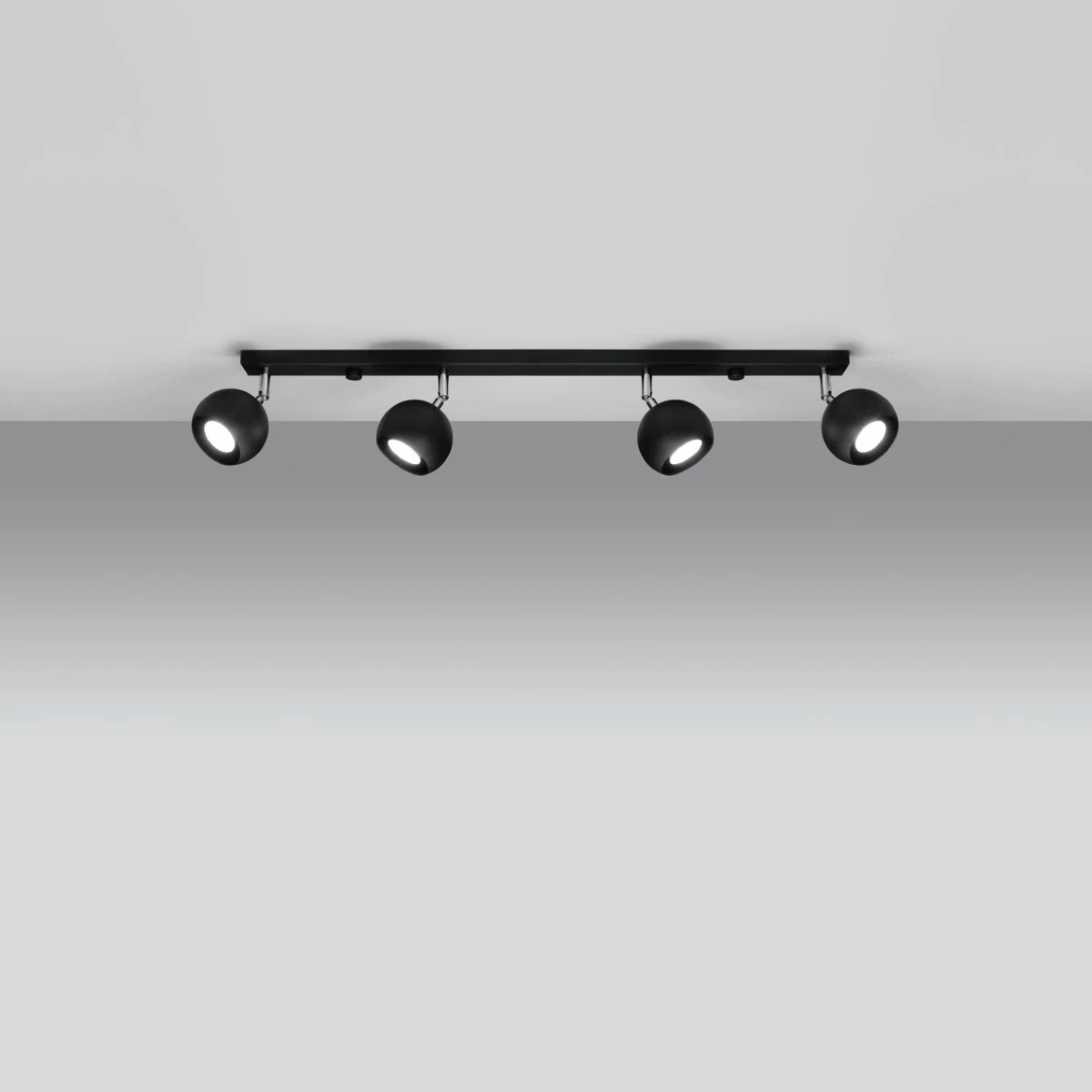 Das moderne Oculare-Deckenpunktlicht ist in fünf Optionen mit unterschiedlicher Anzahl von Spots erhältlich. Entscheiden Sie sich für lineare Beleuchtung mit zwei, drei, vier oder sechs Lichtpunkten oder vier Lampenschirme, die in einem Quadrat angeordnet sind.
